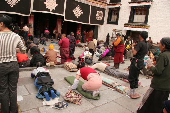 Тибет. Лхаса. У монастыря Джокханг. Обряд богомольцев (чтобы вернуться к тексту, нажмите "х" на кнопке "Просмотр фотографий х").