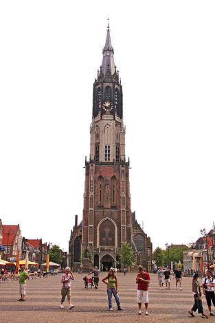 Голландия. Дельфт. Рыночная площадь, 109-метровая колокольня Новой церкви (рассказ "<a href="/routes/europe/holland/avtoholl/">Автопробежка по Голландии и Бельгии</a>")